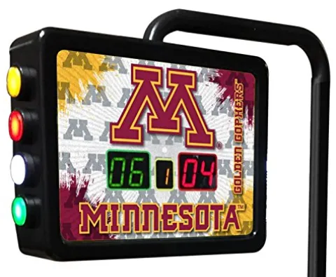 The Holland Bar Stool Co. Minnesota Electronic Shuffleboard Scoring Unit offers a convenient and stylish way to keep track of scores and game progress. Officially licensed and featuring digitally printed full-color graphics, this scoring unit adds a touch of authenticity to your game room. The color-coded push-button counter allows for easy 2-player scoring and game counting. Measuring at 15″ (W) x 11 1/2″ (H) x 3 1/2″ (D), the scoring unit is supported by a 51″ tall stand that extends over the playfield. Versatile and adaptable, this unit can be mounted to almost any game with the included mounting plate. Elevate your shuffleboard experience with this high-quality scoring unit.