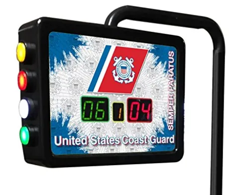 Enhance your shuffleboard gaming experience with the Holland Bar Stool Co. U.S. Coast Guard Electronic Shuffleboard Scoring Unit. This officially licensed unit features digitally printed, full-color graphics that add a touch of authenticity to your game room. The color-coded, push-button counter allows for easy tracking of two-player scores and game progress. With dimensions of 15″ (W) x 11 1/2″ (H) x 3 1/2″ (D), this scoring unit is designed for versatility and adaptability to fit almost any game. The support extends the unit approximately 1 foot over the playfield, providing clear visibility while playing. Mounting is a breeze with the 51″ tall support that can be easily attached to the side of the game. Elevate your shuffleboard setup with this efficient and stylish scoring unit.