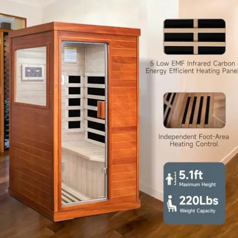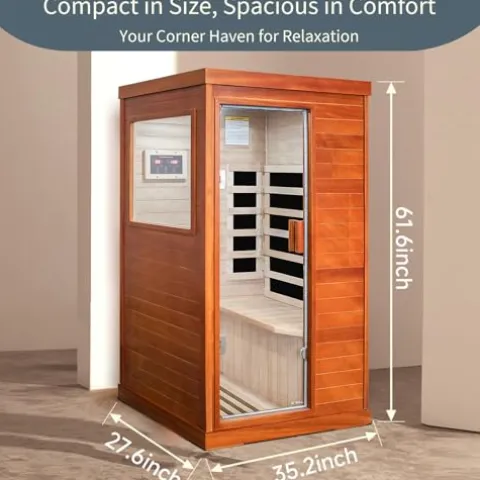 - Space-Efficient Design: This infrared sauna has a small footprint, fitting easily into almost any indoor space. Despite its compact size, it offers a roomy interior for a comfortable single-person experience, providing a luxurious sauna at home