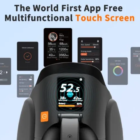 - 【The First Unicycle with Multi-function Touchscreen】The V12HT is the industry’s first electric unicycle with a multi-function touchscreen. You can access to information such as speed, time, battery level, and mileage through the screen easily. You can also change many customization options such as RGB LED ring lights on the screen.