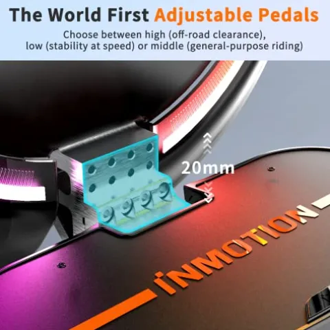 Enhance your urban commuting and off-road adventures with the INMOTION V12HT Electric Unicycle in sleek black. Featuring a powerful 2800W motor producing 188Nm peak torque, this unicycle effortlessly conquers hills with a 45° max slope capability. With a remarkable 96-mile range on a single charge and a top speed of 37.3mph, this unicycle ensures an exhilarating and worry-free riding experience. The 16″ all-terrain tire offers stability and maneuverability, making it ideal for city commuting, trail riding, and stunt performances. The innovative multi-function touchscreen provides easy access to speed, battery level, and more, while the adjustable pedal design enhances safety for various riding scenarios. Unleash your driving desires and enjoy the ultimate hands-free riding experience with the INMOTION V12HT.