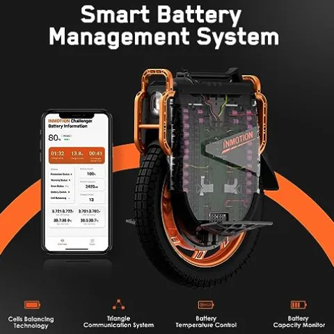 - INMOTION Challenger features a user-friendly modular design for easy maintenance and introduces Smart BMS, utilizing advanced algorithms to enhance long-term battery capacity and charging cycle optimization