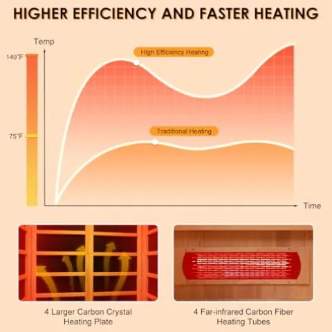 - PREMIUM MATERIAL: We use high-quality Canadian hemlock, which does not have a lot of scarring on the wood, The far infrared saunas can play a warming reaction, refine water molecules, activate cells, and promoting metabolism. Lowers blood pressure, detoxifies and increases blood circulation