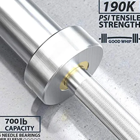 - Durable construction of barbell bar means a loaded bar can withstand drop after drop. Each of the rotating sleeves with 4 needle bearings and one bushing, totally 8 needle bearings in the bar. The bearings design promote comfort, tensile strength rating of 190 000 psi, rotating sleeves to reduce pressure on wrists and forearms, make the snatch more smooth.