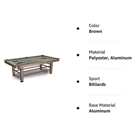 The Imperial 8′ Outdoor Pool Table by IMPERIAL in Brown is an ideal addition to your outdoor entertainment space. This 8-ft. pool table comes mostly assembled, requiring only leg bolt-on and surface leveling. It features anodized aluminum rails, corners, and legs, while the waterproof taclon cloth in Camel color covers the bed. With K66 cushion rubber and included accessories, this pool table offers both durability and style for endless outdoor fun.