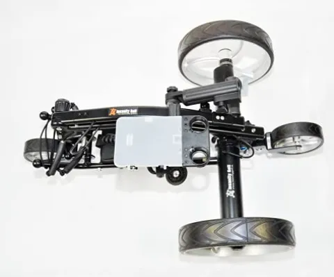 The INSANITY GOLF Electric Golf Trolley Cart is a top-of-the-line companion for your golfing adventures. With a sleek black and orange design, this cart features a durable aluminum frame, 24 Volt 12 Ah Lithium-Ion Battery, and advanced features like Slope Control and Active Steer Assist. The remote control allows for easy maneuvering with 4 factory speed settings, while the variable speed control on the handle dial provides additional customization. The cart boasts a fully adjustable handle, a long-lasting battery that charges quickly, and a range of free accessories including a Score Card Holder, Drink Holder, Umbrella Holder, and Seat. Enjoy convenience and comfort on the course with this high-performance golf trolley cart from Insanity Golf.
