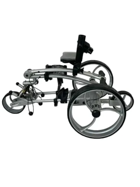 The Insanity Golf PGL Electric Golf Push Cart is a top-of-the-line solution for golf enthusiasts seeking convenience and functionality on the course. This sleek silver cart comes equipped with a host of impressive features, including Active Steer Assist for precise slope control, 9 speed settings on the remote control, and variable speed control on the handle dial. The cart boasts dual high torque motors and a 12Volt 20Ah Lithium-Ion battery, providing ample power for up to 36 holes on a single charge. Additional amenities like a USB charging port, seat, scorecard holder, and umbrella holder make this cart a comprehensive companion for any round. Backed by a 2-year warranty on key components, the Insanity Golf PGL Electric Golf Push Cart offers durability and performance for the avid golfer.