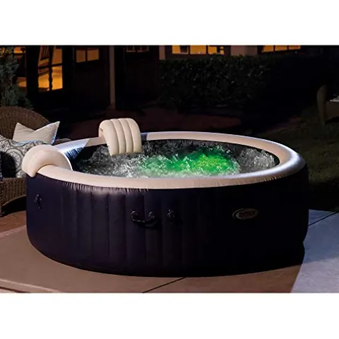 Enjoy a luxurious spa experience right in your own backyard with the Intex 28431E PureSpa Plus 85″ x 28″ 6 Person Outdoor Portable Inflatable Round Hot Tub Spa. This navy blue hot tub is perfect for relaxation with its 170 bubble jets, contoured headrests, and multi-colored LED light. With a water capacity of 290 gallons and a built-in hard water treatment system, maintenance is a breeze. The Fiber-Tech Construction and puncture-resistant material ensure durability, while the two easy-to-replace filter cartridges keep your water clean. This hot tub also comes with a convenient carry bag for storage and transport ease. Please note that due to California energy restrictions, this item is not available for sales or shipping in California.