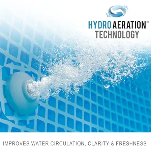 - Includes a low-maintenance sand filter with 5-year sand replacement, built-in GFCI for safety, Hydro Aeration technology for improved circulation and water clarity, and a powerful 2,100 GPH pump flow rate