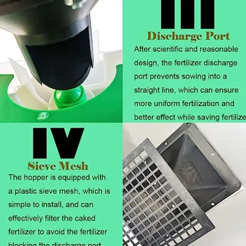 - Evenly Fertilizing:The rotating fan blade can spread the fertilizer evenly and quickly to the field at high speed, and the working efficiency is high, Plastic material.