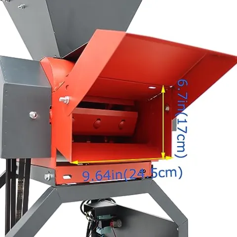 - 【Feeding Port】Widened and thickened feeding port, which is solid and firm. All kinds of grass can be fed easily.The adjustment plate for the opening size of the feeding hopper allows you to choose the size of the caliber for placing root and stem crops such as potatoes and carrots, making it more convenient and practical.Adding the bucket can achieve the crushing of root crops such as potatoes and carrots. Without this bucket, only straw can be crushed.