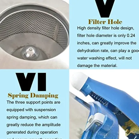 The INTSUPERMAI Centrifugal Industrial Dehydrator is designed for efficient and reliable performance in various industries, including food processing and wool washing. Crafted from durable stainless steel with a heavy cast iron base, this dehydrator ensures stability during operation while minimizing vibrations. It features a high-efficiency centrifugal starting flange for smooth startups and rapid braking, enhancing safety and performance. The robust main shaft, supported by premium bearings, optimizes power usage while maintaining low noise levels. With a simple structure that promotes high processing efficiency, this machine is both user-friendly and effective. For those requiring larger capacities, it can accommodate up to 485 lbs (220 kg), making it a versatile choice for your dehydration needs.