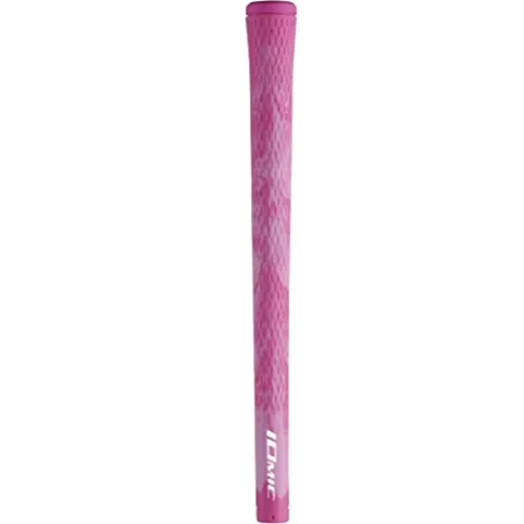 Enhance your golfing experience with the Iomic Sticky Camo Golf Grip Bundle in Pink. This bundle includes 25 high-quality grips designed to offer a comfortable and secure hold on your clubs. The standard 22.3mm grip size, combined with a 0.600-inch round core size, ensures a perfect fit for most golfers. Please note that grip tape and solvent are not included in this bundle. Elevate your game with these durable and stylish pink grips from Iomic.