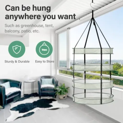 - Application: Perfect suitable for drying kinds of plant such as herbs, flowers, vegetables, buds, pot, seeds and so on. Can be hung anywhere, indoors or outdoors, such as ceiling, grow tent, garage