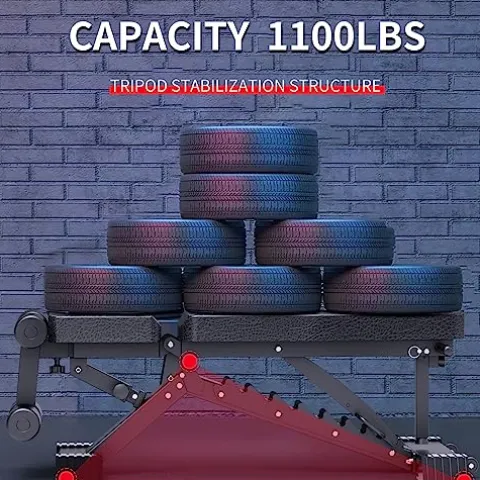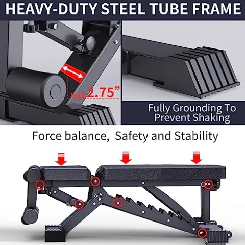 The K KINGKANG Adjustable Weight Bench is a heavy-duty workout bench designed for maximum performance at home. With a premium commercial-grade steel frame boasting an impressive 1100LB weight capacity, this bench is perfect for strength training. The upgraded materials, including 1.2mm thickened steel tubing and an enhanced triangle structure, ensure durability and stability during intense workouts. The extended head and neck protection design provides added comfort and support, while the adjustable incline feature with 10 backrest positions and 3 seat positions offers versatility for various exercises. This multi-purpose bench is perfect for targeting abdominal, arm, shoulder, back, and chest muscles. With thickened padding for comfort and durability, this foldable bench is a compact and reliable addition to your home gym.