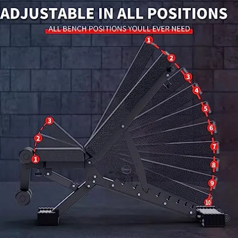 - ✅【ADJUSTABLE INCLINE】10 backrest positions and 3 seat positions bring versatility with incline, flat and decline adjustments. It allows for a range of abdominal, arm, shoulder back and chest in exercises compact design.