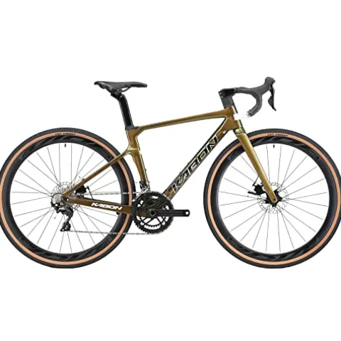Experience the ultimate blend of durability and lightweight performance with the KABON Carbon Gravel Road Bike in Chameleon Green. Crafted with a T800 Carbon Fiber Frame, carbon fork, handlebar, and seatpost, this 700C road bike weighs just 8.7kg (19.2lb) for agile handling. The rugged 700x40c tires offer stability on rough terrain, while the SHIMANO SORA R3000 2*9 Speeds Shifter lever ensures precise and smooth gear changes. Equipped with a powerful mechanical disc brake system, this bike delivers reliable stopping power. Whether you’re a commuter or an entry-level racer, the easy installation makes it a breeze to hit the road and enjoy a comfortable ride with high traction tread.