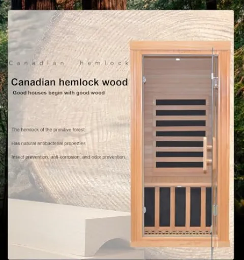 - 【Natural and Durable 1 Person Sauna】-Natural reforest Canadian Hemlock wood, Canadian Hemlock Infrared Indoor Sauna Room is beautiful 、highly resistant to moisture and decay.This ensures the sauna room remains in pristine condition for years to come.