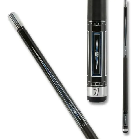 Elevate your game with the KATANA KAT16 Pool Cue, a masterpiece of craftsmanship and style. Featuring a sleek black forearm accented with striking white, blue, and grey points, this cue is both a visual and functional marvel. The 12.5mm Katana Tip by Tiger ensures precise shots, while the 29″ Katana Low Deflection Shaft enhances your accuracy and control. Perfectly balanced at 18oz, the cue’s design is completed with a black Irish linen wrap, adorned with elegant double silver rings and dashes for a comfortable grip. The butt sleeve features intricate inlays of grey rectangles and vivid blue diamonds, making this cue not just a tool, but a statement piece. Whether you’re a seasoned pro or an enthusiastic amateur, the KATANA KAT16 Pool Cue will bring precision and style to every game.