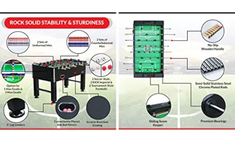 - ⚽️ Table Dimensions: 55″ L X 30″ W X 36″ H ✅