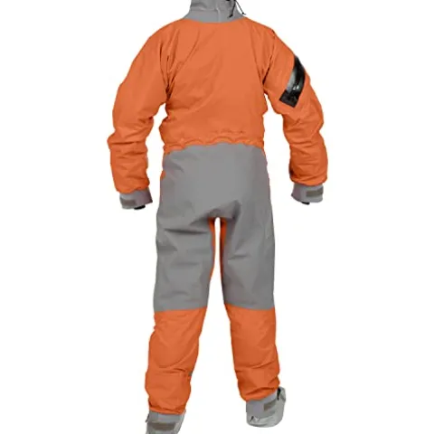 The Kokatat Youth Hydrus 3.0 SuperNova Semi Dry Suit in Tangerine-L is the ultimate choice for young water enthusiasts. Crafted by Kokatat, this suit features the proprietary Hydrus 3.0 fabric that is both waterproof and breathable, ensuring comfort and protection on the water. The reinforced self-draining seat and knee patches make it durable for all adventures. Integrated Hydrus 3L socks keep feet cozy, while the adjustable neoprene neck collar and latex wrist gaskets with protective overcuffs seal out water efficiently. Get your young one geared up for aquatic fun with this high-performance semi dry suit.