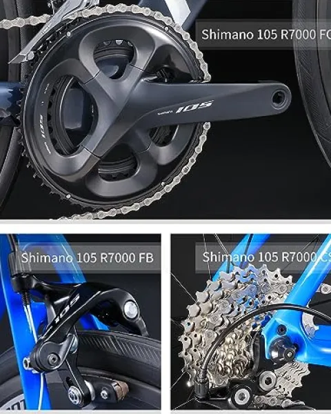 - 【Powerful Peformance】: Complete 105 R7000 group set – including left & right shift levers, front & rear derailleur, front & rear brakes, 2 X 11 speeds Crankset and Cassette. It provides powerful performance shifting and responsiveness; Brake Caliper – a slimmer profile and more rigidity contributing to more positive braking and safer riding.