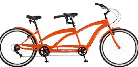 The Kulana Lua Tandem Adult Beach Cruiser Bike in striking orange is the ultimate choice for shared adventures. This double rider bicycle features 26-inch wheels and is ideal for riders between 5’4″ to 6’2″ in height. Crafted with a sturdy Hi-Ten steel frame and oversized fork, this bike offers exceptional durability and strength for smooth rides. The Torque Drive 7-speed twist shifters allow for easy adjustments to various terrains, while the front and rear V-brakes ensure reliable stopping power. With cruiser handlebars and rise stems designed for comfort and an upright riding position, this tandem bike offers a relaxed and enjoyable riding experience for both men and women.