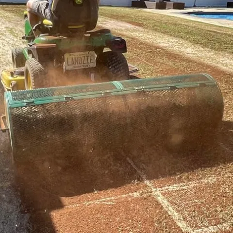 - LANDZIE 60 INCH EXTRA-LARGE LAWN SPREADER: Landzie is your go-to source for a lush, professional-looking green lawn this season. Our walk behind topdressing roller pampers and nurtures your grass, providing essential nutrients to plant, feed and weed for your lawn, flowers, plants, and gardens. Use for compost, peatmoss, topsoil, topdressing, manure, mulch, dirt for larger lawns, agriculture, farming, turf, golf courses, football fields. The lawn you’ve always desired is now only a click away.