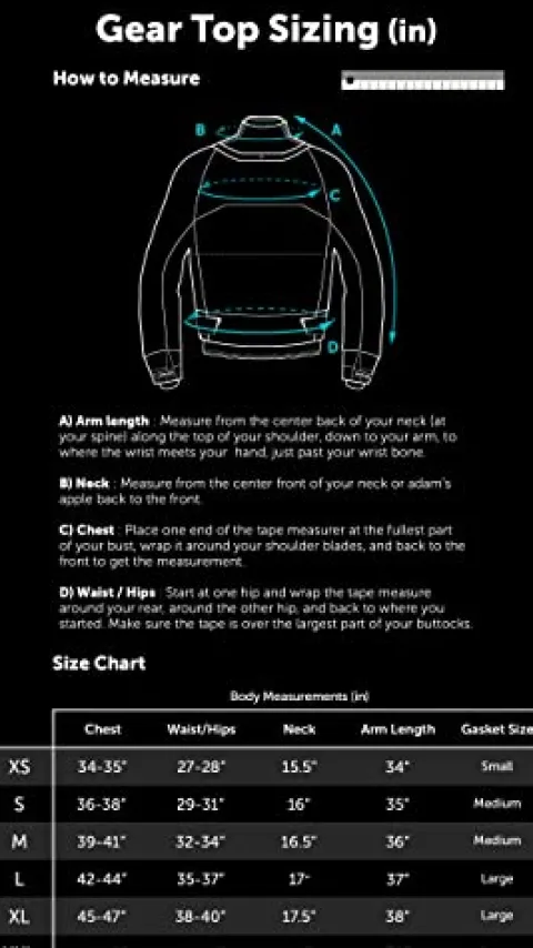 - Latex gaskets on neck and wrist closures for an optimal fit