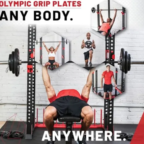 Enhance your home gym with the Lifeline Fitness 355 Pound Olympic Weight Set, designed for serious fitness enthusiasts. This commercial-grade set features rubber-coated Olympic grip plates in sleek black, ensuring durability and minimal bounce for safe workouts. With multiple open grip holes and stainless steel inserts, these plates offer a secure fit on your barbell and versatile handheld use. Meeting IWF standards, this set promises top-tier performance for both competition training and everyday workouts. Elevate your strength training routine with a set engineered for precision, safety, and longevity.
