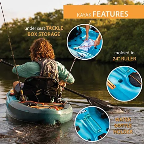 - Equipped for Fishing: Built in rod holders (1 Adjustable, 2 Flush Mounted), accessory mounting, tackle box storage, and a ruler to measure your catch.