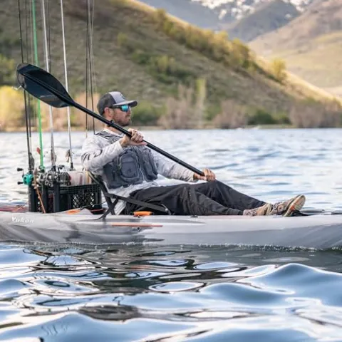 The Lifetime Yukon Angler Kayak in sleek gray is your ultimate fishing companion, designed for both comfort and functionality on the water. This 11′ 6″ sit-on-top kayak features a quick-dry foam-back mesh seat and an adjustable frame seating system, providing optimal comfort for long fishing trips. Equipped with a triple rod holder design and high initial stability hull, it allows for effortless stand-up casting. Transporting is made easy with four luggage-style handles, while the skeg wheel ensures enhanced tracking in the water. With integrated mounts and universal tracks, customize your kayak with accessories to suit your fishing needs. The water-resistant storage hatch, tankwell with bungee cord, and molded-in ruler add practicality, ensuring your gear is secure and your catch is accurately measured. Ready for rudder and transducer upgrades, this kayak promises a superior fishing experience.
