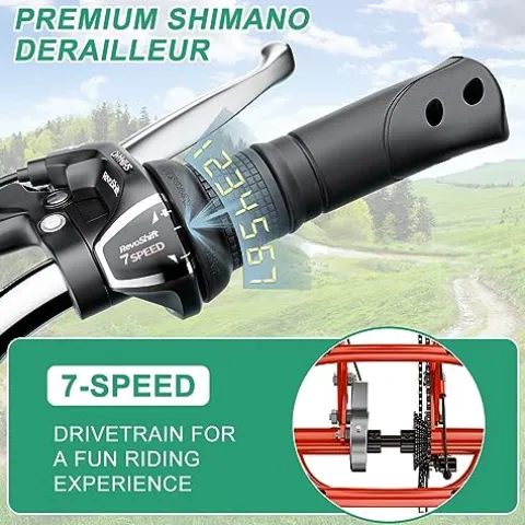 - 【7-SPEED Derailleur】- Equipped with 7-speed trigger shifters and derailleur. Provides a wide range of gears and smooth shifting, making your riding safer and more enjoyable;