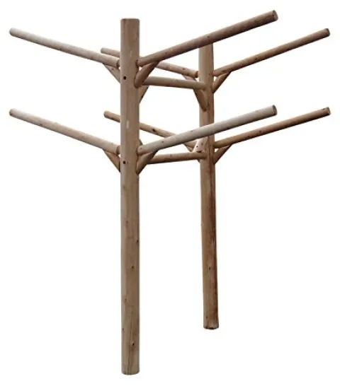 Organize your kayaks, canoes, and SUPs with the 4 Place Buried in Ground Kayak and Canoe Rack Unfinished by Log Kayak Rack. Crafted with meticulous attention to detail, this rack is made with glued mortise and tenon joinery in northern Wisconsin using durable Northern White Cedar that can withstand indoor and outdoor use. With dimensions of 100″H x 84″D x 53″W, it can hold up to 4 kayaks, surfboards, canoes, or SUPs. Perfect for sloped terrains, this rack offers a convenient and space-saving storage solution while adding a rustic charm to your outdoor space. Assembly is required to enjoy the benefits of this sturdy and reliable storage rack.