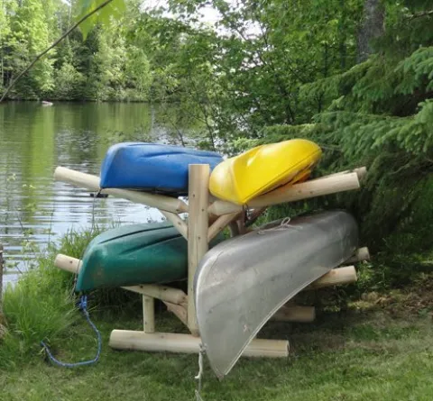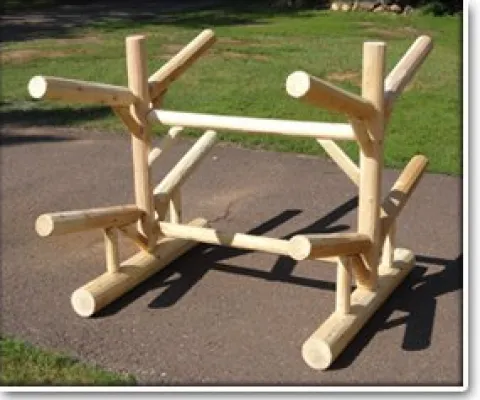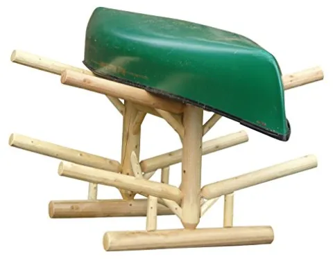 The Log Kayak Rack 4 Place Unfinished provides a sturdy and reliable solution for storing your kayaks, surfboards, canoes, or SUPs. This heavy-duty rack is capable of holding up to 4 boats, each weighing up to 100 pounds. Crafted from 100% northern white cedar logs with mortise and tenon joinery, this rack combines durability with a rustic aesthetic. Made in Manitowish Waters, Wisconsin, and proudly manufactured in the USA, this rack comes with a 1-year warranty for added peace of mind. Please note that assembly is required.