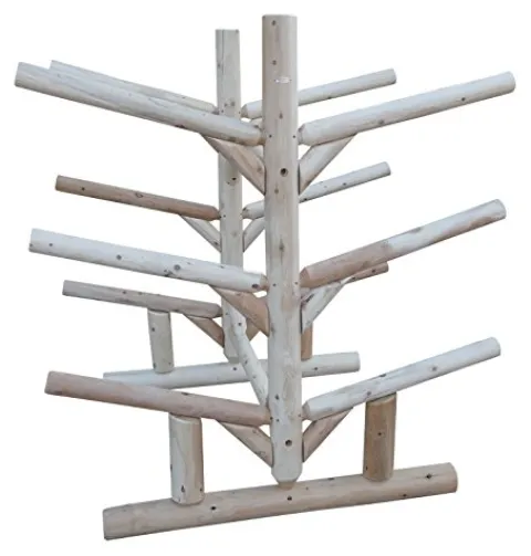 Organize your kayaks, surfboards, or stand-up paddleboards neatly with the 6 Place Freestanding Kayak and SUP Storage Rack by Log Kayak Rack. Crafted in Manitowish Waters, WI, this rack is proudly made in the USA using Northern White Cedar from Northern Michigan. The sturdy construction with glued Mortise and Tenon Joinery ensures durability and stability. With dimensions of 64″H x 60″D x 53″W, this unfinished log rack requires assembly and offers a practical storage solution for your water sports equipment.
