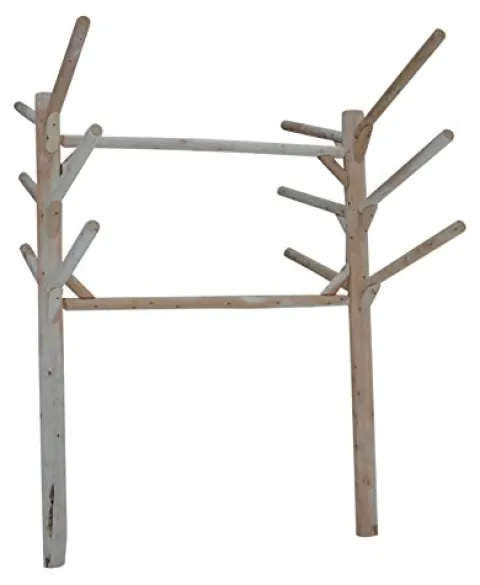 Organize and secure your kayaks and SUP boards with the Log Kayak Rack 6 Place Kayak and SUP Board Rack Buried in ground. Crafted with precision using glued mortise and tenon joinery in northern Wisconsin, this rack is made to last with durable Northern White Cedar suitable for both indoor and outdoor use. With the capacity to hold up to 6 kayaks, surfboards, or SUPs, this rack is a practical storage solution for watersport enthusiasts. Whether buried in the ground or attached to a dock, this rack offers versatile installation options. Assembly is required, and its design is optimized for placement on hillsides, making it a functional and reliable choice for organizing your watercraft collection.