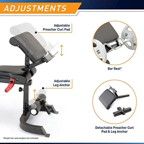 - Durable and Adjustable: Heavy-duty steel construction with a powder-coating effectively resists damage from intense use; Bench adjusts at the back pad and seat pad to diversify your workout