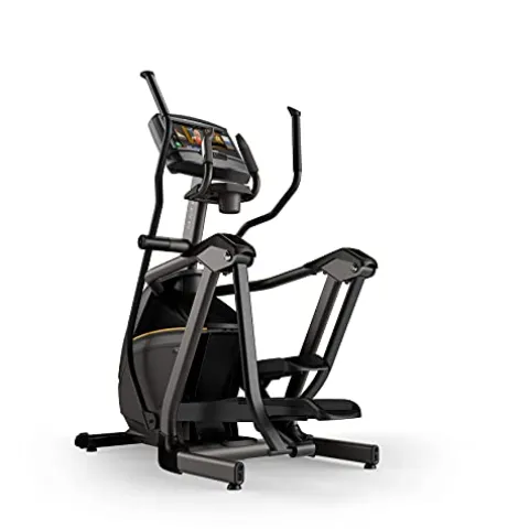Enhance your home workout with the Matrix Fitness E30 Elliptical Trainer with XIR Console. This elliptical, designed by the trusted brand Matrix, combines quality construction with advanced features for a top-notch fitness experience. The sleek black and yellow color scheme adds a modern touch to your exercise space. With a range of customizable settings and the XIR Console providing interactive workout options, this elliptical trainer is the ideal choice for achieving your fitness goals in style.