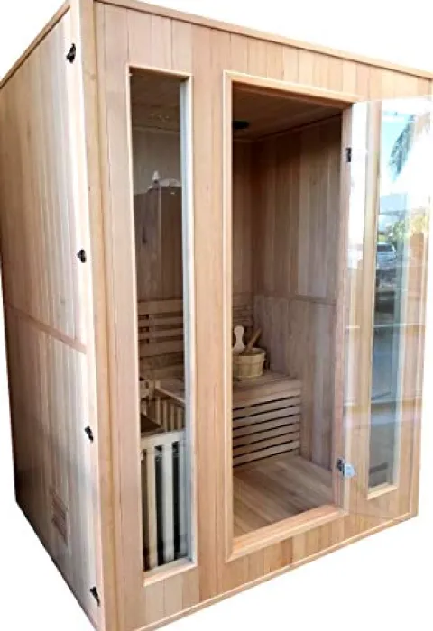 - Indoor Usage Only! 100% Factory Sealed and Tested, 2 to 3 People, Includes: Water Bucket, Ladle, Sand Timer, 6kw Heater (Wet or Dry use), Rocks, Advanced Control Panel, Thermometer, and Interior Light (Installation by a licensed contractor/electrician is required for proper usage!).