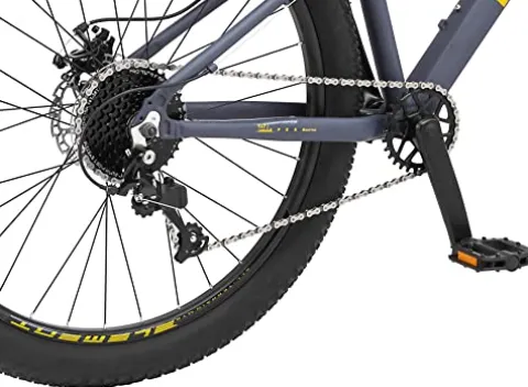 - 2.6-inch wide knobby mountain tires provide extra grip and stability paired with alloy double wall rims that add lightweight strength
