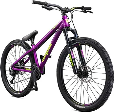 The Mongoose Fireball Dirt Jump Mountain Bike is tailored for serious riders who crave precision and style, just like pro rider Greg Watts. Crafted with a lightweight Tectonic T1 aluminum frame and equipped with a REST Dirt-T alloy suspension fork, this bike handles hard landings effortlessly with its 100mm of travel. A SunRace 9-speed drivetrain, Shimano components, and MRP G3 chainguide ensure smooth and reliable shifting for every jump and slope. Mongoose mechanical disc brakes with 160mm rotors provide exceptional stopping power, while the exposure double-butted aluminum handlebars are designed for easy bar-spins. The 26-inch double-walled aluminum wheels paired with Kenda small block tires offer stability and grip on any terrain. Perfect for riders 5’4″ to 6’2″, the Mongoose Fireball is your ultimate dirt jump and slope style companion, ready to assemble and hit the trails in eye-catching purple.