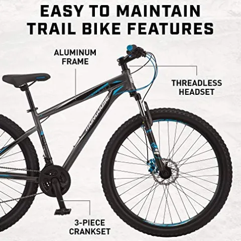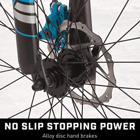 - Mountain bike comes with front and rear disc brakes to deliver all-weather stopping power