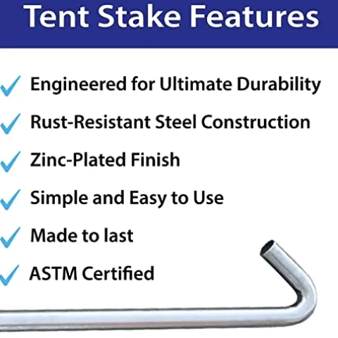 - Stakes are constructed from Rust-Resistant Steel with a Zinc-plated finish
