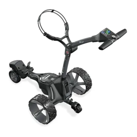 - FOLDABLE: Fold your M7 GPS Electric Caddy down into a compact and portable package for easy storage and transportation. The simple folding mechanism and lightweight design make it easy to take this caddy with you wherever you go, whether you’re traveling to a new course or simply storing it in your trunk.