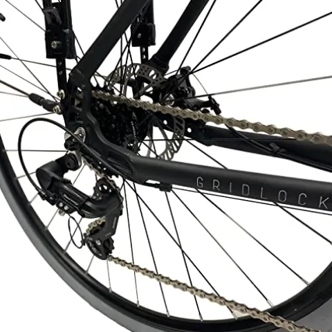 - DRIVETRAIN: The Gridlock comes fully equipped with a Shimano Tourney 7 speed derailleur and HG200 11-32T cassette, KMC 7 speed chain, and an aluminum 170mm 42T crankset.
