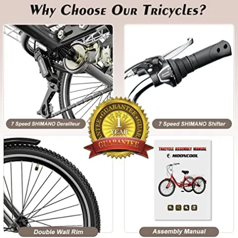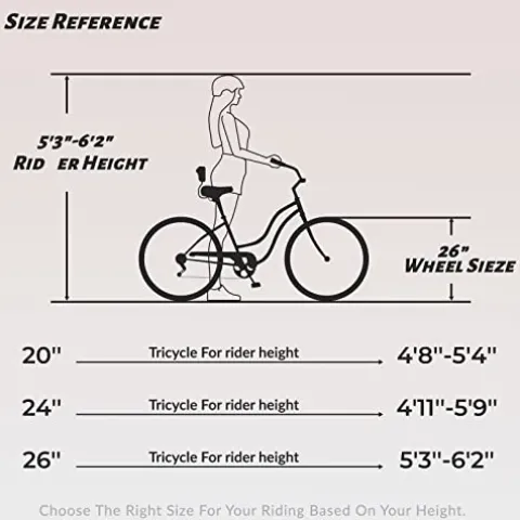 - ❤ 7-SPEED FULL-SIZED TRIKE: The adult trike features a 7-speed drivetrain, front linear pull brake, and rear expander brake to create a fun ride that’s simple to use. 20″ wheel suitable for rider height:4’8″ – 5’6″; 24″ wheel suitable for rider height:4’11” – 5’10”; 26″ wheel suitable for rider height:5’3″ – 6’2″.
