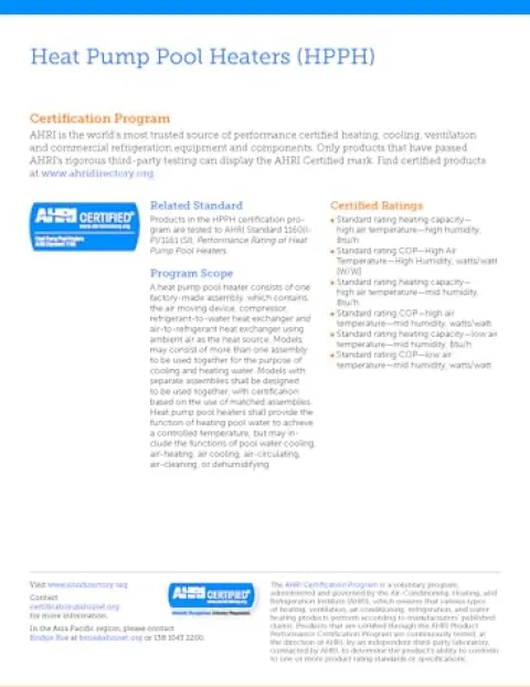 - 💧 AHRI CERTIFIED – Rated to provide energy efficient pool heating. Independently tested and Third Party verified to conform within manufacturer’s performance ratings.