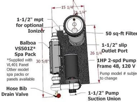 - Balboa Spa System – 1 HP Pump, 1.5 Kw Heater,50 sqft