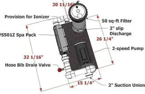 - 3 HP 2-speed Balboa pump runs both circulation/filtration and jets